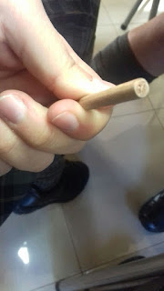 13.- al palo añadido a la ampolleta colocar alambre de cobre hasta que quede flotando en la mitad del frasco ( si sigue flotando añadir mas alambre y si esta se hunde, quitar un poco)